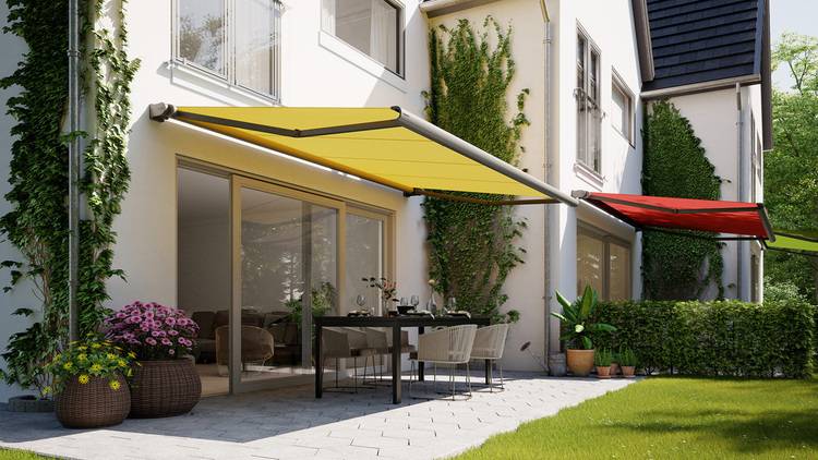 Die Neigung lässt sich zudem zwischen 15 und 70 Grad durch einen Fachhändler einstellen. Damit ist ein guter Regenablauf von der Tuchfläche gewährleistet und mehr Privatsphäre. Die kleine, pulverbeschichtete Kassette schütze das Tuch außerdem zuverlässig vor Schmutz. Und mit einer Bauhöhe von gerade einmal zehn Zentimetern füge sich das Modell, das es in drei Gestellfarben gibt, gut in das Gesamtbild kleiner Outdoorräume. Hinzu komme eine zeitgemäße Technik. So zum Beispiel die aus Hightech-Fasern bestehende Bionic-Sehne für besonders stabile Gelenkarme oder die Option eines Motorbetriebs.