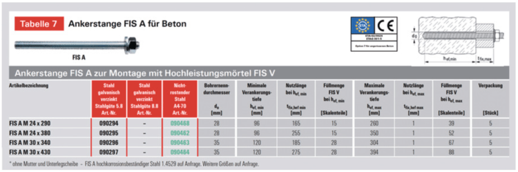 Beim Befestigungsmittel selbst stehen die Kriterien Dimensionierung oder Anzahl zur Verfügung. Natürlich muss eine entsprechende ETA-Zulassung vorliegen, die Beachtung finden muss.