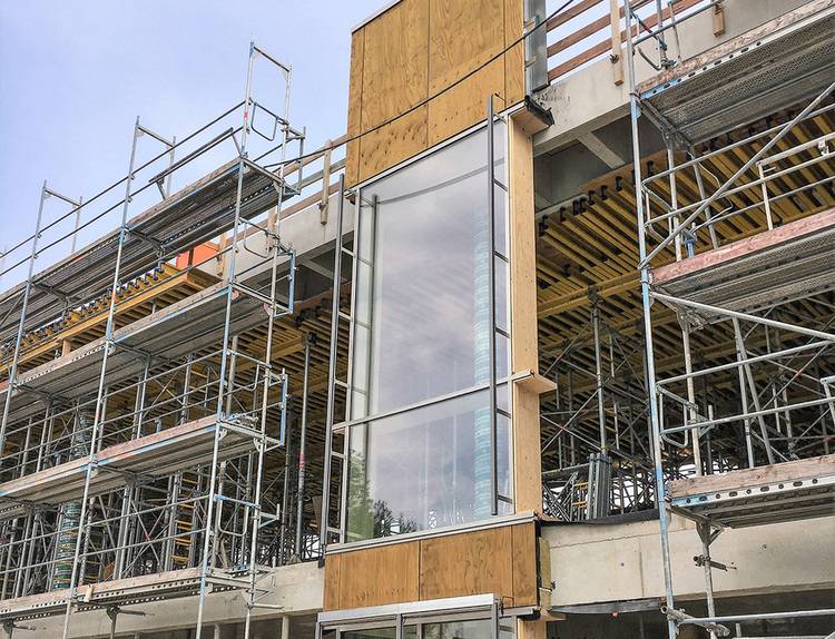 Wie das Beispiel der Mensa in Garching eindrucksvoll zeigt, lassen sich große Glasfronten mit schweren Verglasungen an der Fassade auch durch kleinere und mittlere Handwerksbetriebe fertigen und im Werk vormontieren.