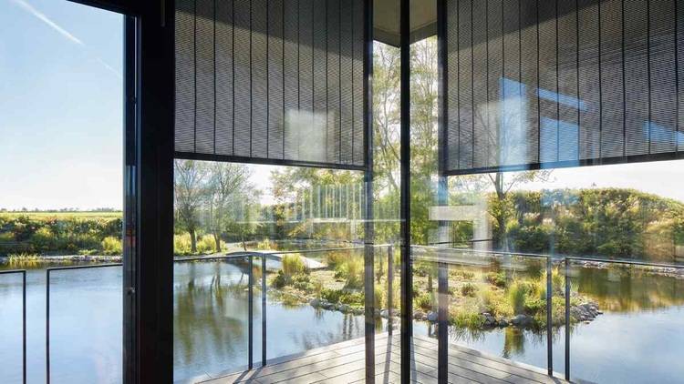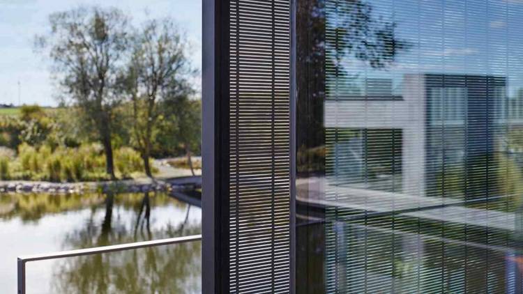 Wie alle Metallbehänge von MHZ verringert auch s_enro die solare Energie, die in das Gebäude gelangt, während sein durchdachtes Design diffuses Tageslicht kontrolliert ins Gebäudeinnere lenkt und so eine ausgewogene, blendfreie Raumstimmung schafft. Auch im geschlossenen Zustand bleiben Blickbeziehungen zur Umgebung erhalten – ein tragender Aspekt des ganzheitlichen Raumkonzepts, das auf die harmonische Integration von Licht, Luft und Landschaft setzt. „Unsere Metallbehänge verbinden technologische Präzision mit gestalterischer Klarheit. Sie schaffen nicht nur Sonnenschutz, sondern tragen auch maßgeblich zur architektonischen Identität bei, indem sie das Spiel mit Licht und Transparenz in den Raum integrieren“, erläutert Thomas Pollworth, Architekten- und Projektberater bei MHZ.