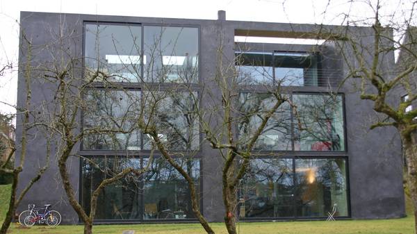 Vom ift-Sachverständigenzentrum waren im Rahmen eines Gerichtsgutachtens die Funktionsstörungen an Hebeschiebetüren in einem Wohnhaus zu klären. Die Türen waren putzbündig in dem mit mehreren Architekturpreisen ausgezeichneten Objekt verbaut (siehe Bild 5). Die Hebeschiebetürflügel ließen sich bereits nach einer Nutzungsdauer von 6 Monaten nur mit stark erhöhtem Kraftaufwand aufschieben bzw. wieder schließen. Nach ca. einem Jahr konnten zwei Elemente nicht mehr geöffnet werden; sowohl Schwellenprofil als auch oberes Rahmenprofil hatten sich mittig um ca. 6 mm nach unten durchgebogen. Die unteren Rahmeneckverbindungen wiesen zwischen den Alu-Schwellenprofilen und den Holzprofilen Spaltöffnungen von ca. 1,5 mm auf; die Öffnungsmechanik war deformiert.