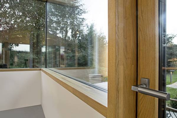 Planer haben bei FineLine für die Fassade die Möglichkeit, das gesamte System individuell zu definieren und das maßgeschneiderte Produkt endkonfektioniert auf die Baustelle des Bungalows liefern zu lassen. So kann beispielsweise die innen liegende und damit wohnraumrelevante Pfosten-Riegel-Konstruktion werkseitig in fünf verschiedenen Holzarten sowie 187 Holzfarbtönen produziert werden. Unilux verwendet bei FineLine ausschließlich massives schichtverleimtes Holz und macht damit deutlich, dass hier kompromissloses Qualitätsdenken zugrunde gelegt wird.