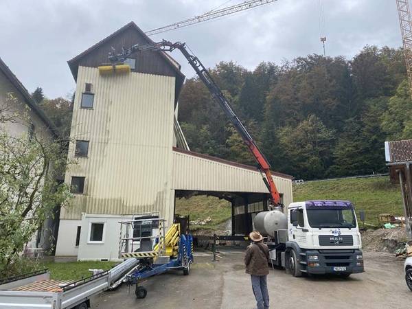 Bei einem Kunden im Allgäu hat SunBrush Mobil den WallCleaner bereits zur Reinigung einer Kühlhausfassade eingesetzt. Durch den Temperaturunterschied im Gebäudeinneren und außen kondensiert dort häufig Luftfeuchtigkeit an der Gebäudehülle, wodurch sich Schimmelpilze bilden. "Das sieht unschön aus. Mit dem WallCleaner sind sie aber schnell und einfach entfernt", sagt Ehleuter.