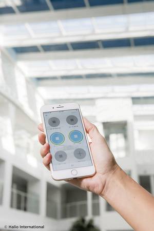 Ergänzt wird das Halio System durch eine cloudbasierte Regelung, die in jedes gängige Gebäude automationssystem integrierbar ist. Halio Cloud passt Tönungsgrad dank spezieller Algorithmen an die individuellen Bedürfnisse an, wobei individuelle Parameter wie Gebäudenutzung, Lage und Ausrichtung der Fassaden sowie Wetterbedingungen in die Berechnungen einfließen. Die Steuerung durch den Endnutzer erfolgt über intuitive und drahtlos vernetzte Schnittstellen. Jedes Glaspanel wird über einen eigenen Regler kontrolliert.