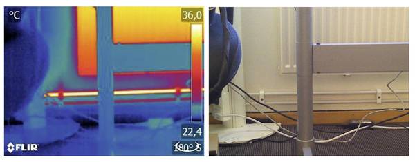 Der Ausleuchtung in der Fotografie entspricht das Zusammenspiel von Objektstrahlung und reflektierter Umgebungsstrahlung, wobei letztere stört und zumindest Punktreflexionen vermieden werden sollten. Dies geschieht durch Aufsuchen einer geeigneten Aufnahmeposition. Diese sollte auch so gewählt sein, dass auf dem Bild das Objekt von Interesse zu sehen ist und nicht verdeckt wird. Dies mag selbstverständlich erscheinen, doch gerade im Gebäudebereich sind viele Berichte zu sehen, in denen die zu untersuchenden Leitungen oder Fenster von Sofas, Zimmerpflanzen oder Gardinen verdeckt waren. Das Bild 7 illustriert diesen doch viel zu oft vorkommenden Fall.