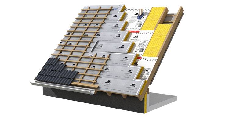 Wird das Dach von außen saniert, müssen sich Planer und Ausführende vorher gut überlegen, wie sie die dampfbremsende und luftdichtende Ebene aufbringen: Entweder sie verlegen die Dampfbremse schlaufenförmig über den Sparren oder flächig zwischen der Zwischen- und Aufsparrendämmung. Der Hersteller Ursa hat durch hygrothermische Berechnungen nachweisen lassen, dass sich die Dampfbremse und Konvektionssperre Ursa Seco Pro SDV bzw. Ursa Seco Pro 2 für die flächige Variante über den Sparren respektive der Zwischensparrendämmung ohne Schadensrisiken eignet.