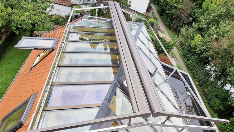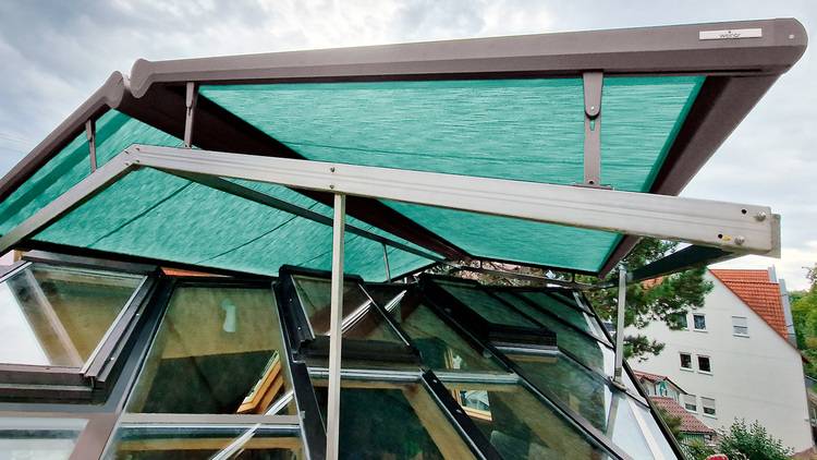 Weinor WGM Top: Doppelte Markisenkonstruktion für facettiertes Glasdach