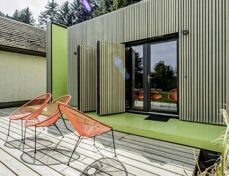Modernes Holzhaus: Wie Faltschiebeläden für ein homogenes Fassadenbild sorgen