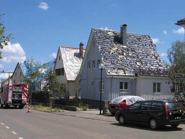 Hageltests am Süddeutschen Kunststoffzentrum haben gezeigt, dass eine Aufsparrendämmung mit PU-Hartschaum-Wärmedämmplatten PUR/PIR nicht nur vor Hitze und Kälte, sondern auch vor Hagel und Wasser zuverlässig schützt. Dabei wurde BauderPIR simuliertem, schwerstem Hagelschlag ungeschützt ausgesetzt. Das Ergebnis war hervorragend: selbst direktem Beschuss mit unwahrscheinlichen 200 km/h hielten die Wärmedämmelemente stand. Mit dem Sommer nähern sich wieder die Wochen schwerer Unwetter mit starkem Hagelschlag. Sie verwüsten alljährlich tausende von Dächern. Gegen bis zu tennisballgroße Hagelkörner haben in der Regel Dachziegel keine Chance, die meisten eingebauten Unterspann-, Unterdeck- und Unterdachbahnen und -platten werden durchschlagen und lassen das Wasser des nachfolgenden Regens in die Häuser. Dachgeschosse werden überschwemmt, Wohnungen und Gebäude schwer beschädigt.
