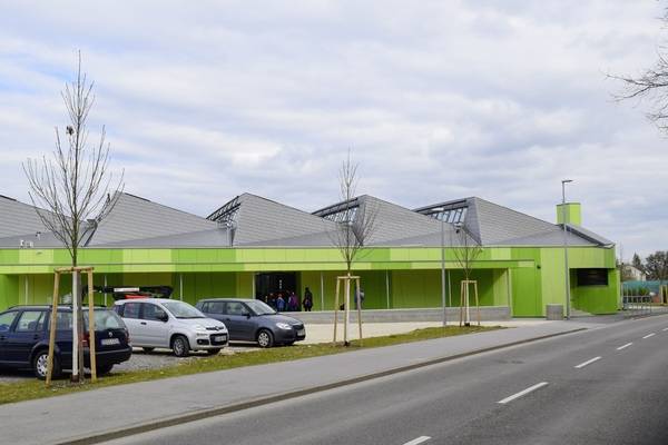 Um dem geforderten Schallschutz gerecht zu werden, wurden für die Bekleidung der Innenwände akustisch wirksame Prallschutzwände und für die äußere Fassade eine witterungsbeständige Bekleidung aus acetylierten Dreischichtplatten eingesetzt. Die bis zur Unterkante des Tragwerks 7 m hohe Halle musste an das städtebauliche Umfeld angepasst werden und sollte aus Rücksicht auf die Nachbarbebauung eine möglichst geringe Gebäudehöhe aufweisen. Aus diesem Grund wurde die Bodenplatte aus Stahlbeton vertieft in das Erdreich abgesenkt. Es entstand für den Nebenraumtrakt eine zweigeschossige Lösung.
