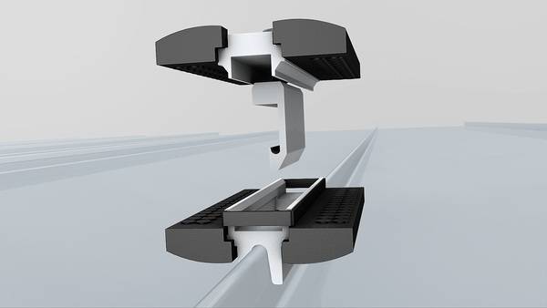 Das Herzstück des Solarsystems ist die patentierte Falz- und Modulklemme, die mit nur einer Schraube an den Stehfalzen montiert wird und die rahmenlosen Module sicher sowie zwängungsfrei fixiert. Die Montagehöhe beträgt insgesamt ca. 40 mm, sodass die Module die Stehfalze nur geringfügig überragen. Die Anbringung erfolgt gleichzeitig fest und gleitend, was für Metalldächer ganz wesentlich ist: Einerseits wird eine sichere, ausreichend starke Klemmwirkung am Falz erreicht, andererseits behindert aber die Klemme nicht durch seitliche Kräfte auf den Haftfuß die thermische Längenänderung der Schare. Das Klemmprinzip des Montagesystems kommt allein mit vertikaler Presswirkung aus.