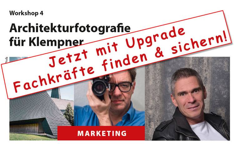 Gute Fotos sagen mehr als Worte – das ist bekannt. Sie machen auf die Leistungsfähigkeit im Fachbetrieb aufmerksam und unterstützen somit die Suche und Sicherung von Auszubildenden und Fachkräften. Deshalb ergänzt BAUMETALL-Chefredakteur Andreas Buck den Workshop "Architekturfotografie für Klempner" mit dem Vortrag „Das Projektfoto als Erfolgsfaktor bei der Personalsuche“.
