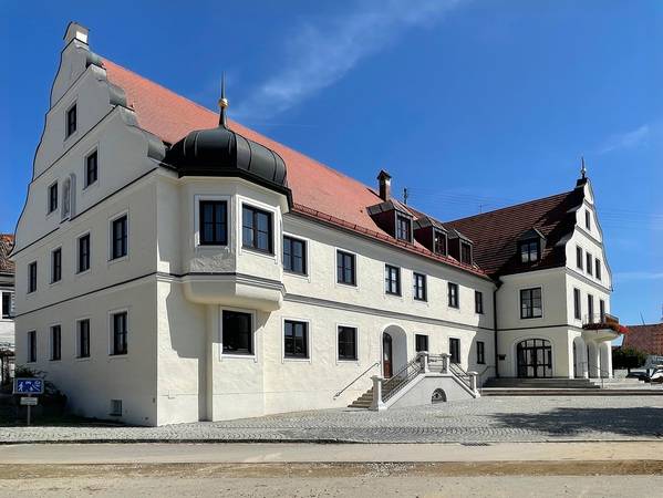 Der Gemeinderat von Buttenwiesen kann wieder in trockenen, sanierten Mauern tagen. Das historische Rathaus litt unter erheblichen Bauschäden. Der Dachstuhl hatte sich aufgrund der morschen Balken bereits gesenkt, die Wände und der Gewölbekeller waren durchfeuchtet. Im Rahmen einer Komplettsanierung erfolgte auch der Einbau einer nachträglichen Horizontalsperre im Bohrlochverfahren gegen saugende, aufsteigende Feuchtigkeit.