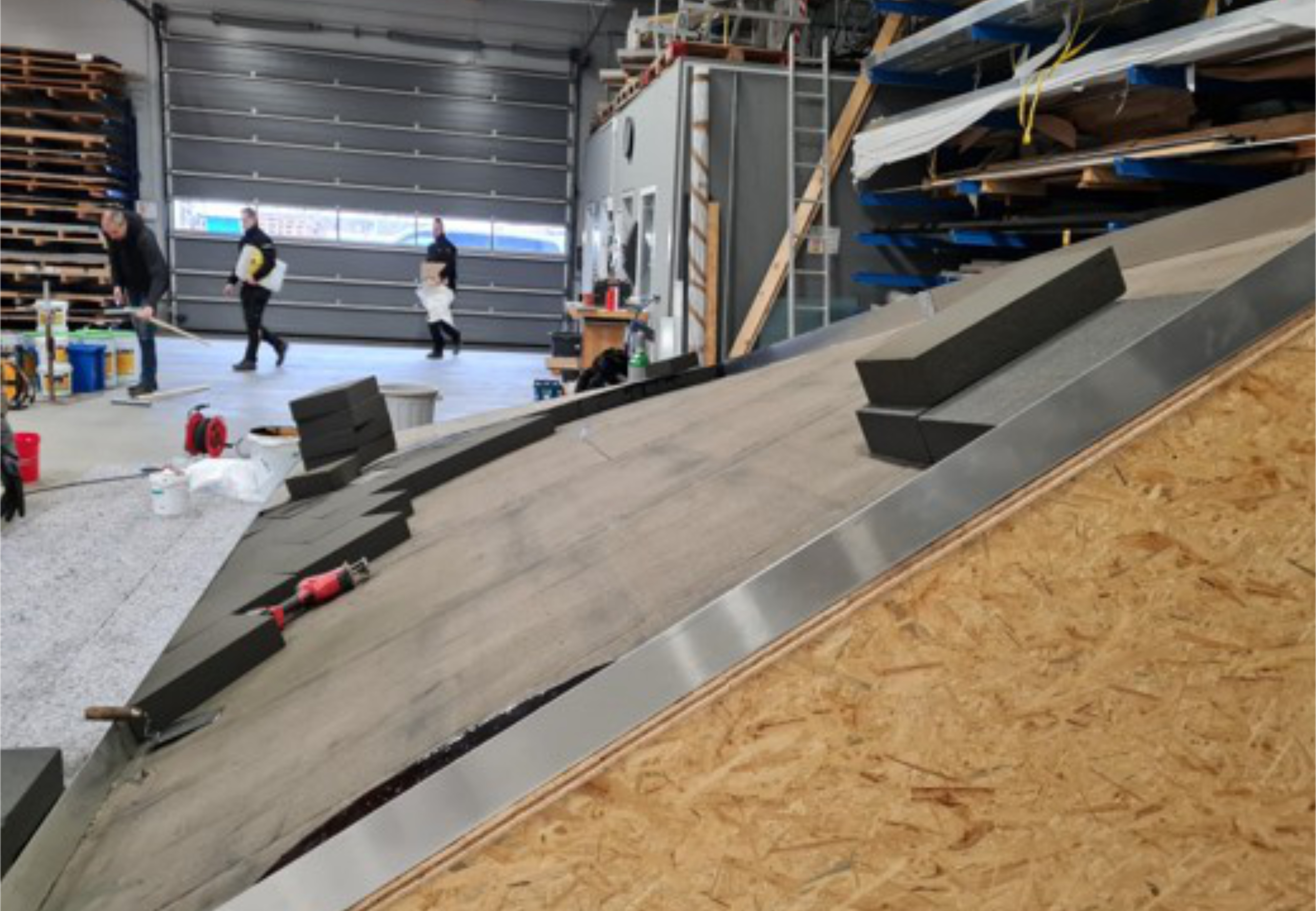 Insgesamt kamen 6.175 Quadratmeter Foamglas-Dämmplatten in verschiedenen Bereichen des Baus zum Einsatz: Auf dem Hauptdach wurden 4.400 Quadratmeter Foamglas T3+ mit einer Dicke von zehn Zentimetern verbaut sowie weitere 400 Quadratmeter an der Attika. Unter dem Schwimmbecken wurde Foamglas T4+ auf 635 Quadratmetern Fläche mit einer Dicke von sieben Zentimetern als lastabtragende Wärmedämmung eingesetzt.