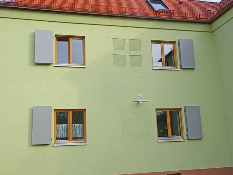 Die nicht brennbare (A1) Spritzdämmung auf Mörtelbasis kann auf jeglichen Untergrund aufgebracht werden und ist damit sehr anpassungsfähig. Das ist eine besonders wichtige Eigenschaft für das Bauen im Bestand: Denn das Speichervermögen der alten sowie schweren Wände musste während der Sanierung ebenfalls berücksichtigt werden. „Bei der Gestaltung war uns wichtig, die historische Bausubstanz zu bewahren und gleichzeitig Lösungen für die Herausforderungen des Klimawandels umzusetzen“, so Christian Kirchberger, verantwortlicher Architekt des Büros Luxgreen Climadesign (Regensburg).