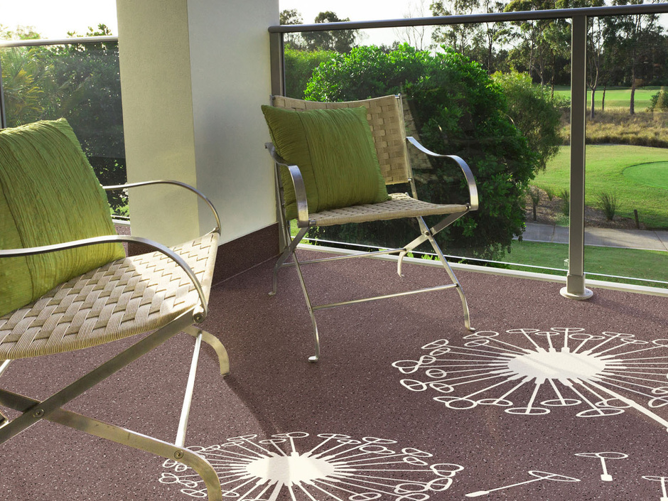 Die Schablonen lassen sich in Form von Bordüre, Element, Bild und Fläche beliebig applizieren. Als Bordüre ziert Triflex FloorTattoo den Rand von Balkon, Terrasse oder Eingang, als filigranes Einzelelement prägt es bestimmte Bereiche. Größere Bilder setzen beispielsweise im Zentrum Akzente. Eine weitere Variante besteht darin, die gesamte Fläche zu bearbeiten und damit eine wirkungsvolle Oberfläche zu erzielen. Für die Gestaltung steht eine Kollektion mit unterschiedlichen Mustern zur Verfügung.
