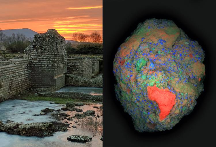 Bei näherer Betrachtung enthalten diese antiken Proben auch kleine, charakteristische, hellweiße Mineralmerkmale im Millimeterbereich, die seit langem als allgegenwärtiger Bestandteil römischer Betone gelten. Diese weißen Brocken, die oft als „Kalkbrocken“ bezeichnet werden, stammen von Kalk, einem weiteren Schlüsselbestandteil der alten Betonmischung. „Seit ich anfing, mit antikem römischem Beton zu arbeiten, war ich fasziniert von diesen Eigenheiten“, sagt Masic. „Diese Bestandteile sind in modernen Betonrezepturen nicht zu finden, also warum sind sie in diesen alten Materialien vorhanden?“