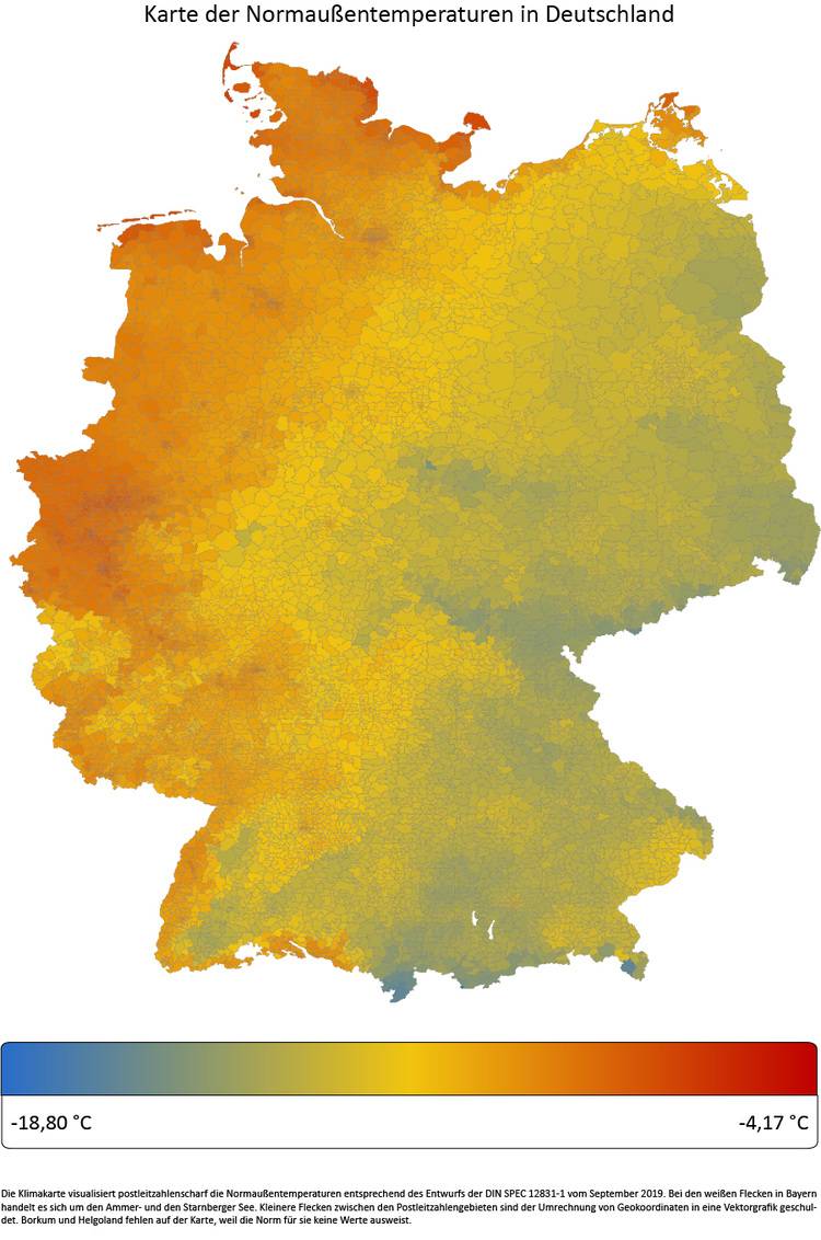 - Normaußentemperatur PLZ-genau zwischen -17 und -7 °C (diese sind auch Bestandteil der einfachen Verfahren)