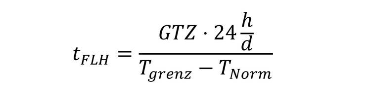Über die Norm-Außentemperatur, die Gradtagszahl sowie die Heizgrenztemperatur werden die Vollbenutzungsstunden tFLH ermittelt; also die Dauer, die ein Wärmeerzeuger mit Nennleistung theoretisch betrieben werden müsste, um den rechnerisch ermittelten Jahreswärmebedarf zu decken. In der Praxis liegt die Zahl der Betriebsstunden höher, da die Heizanlage in vielen Zeiträumen im Jahr mit reduzierter Leistung nur in Teillast betrieben wird.