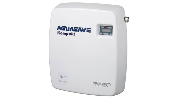 Die AguaSave-Module kommen in zahlreichen Heizungsanlagen von Brötje zum Einsatz, um der VDI 2035 zu entsprechen. Die Geräte werden nun durch das Wasseraufbereitungsmodul AguaSave Kompakt ergänzt. Es fällt im Vergleich zum größeren AguaSave deutlich kleiner aus.