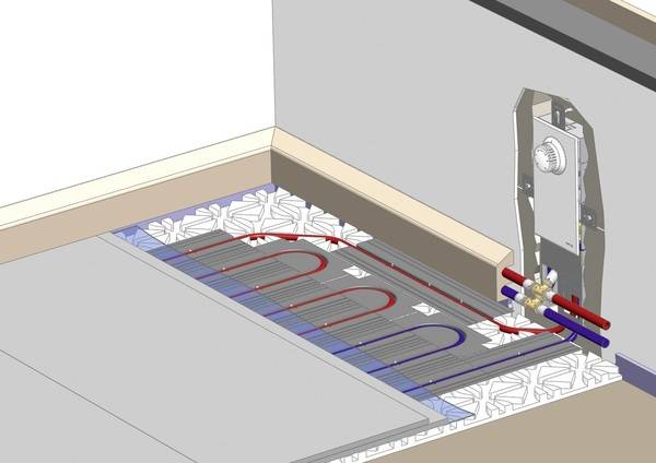 So entsteht oberhalb der durchlaufenden Zuleitungen eine Ebene für einen separat regelbaren Heizkreis im Estrich.