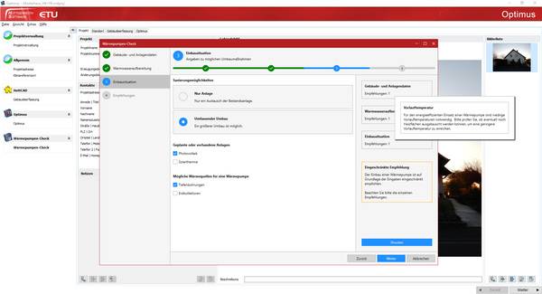 Ein hydraulischer Abgleich an vorhandenen Heizsystemen optimiert die Wärmeverteilung im Gebäude, spart Energie und senkt Heizkosten. Die Software Optimus unterstützt hier den Abgleich von Heizsystemen im Gebäudebestand und ermittelt aus den überschlägig berechneten Heizlasten der einzelnen Räume die günstigsten Werte für die Vorlauf-Temperatur sowie Pumpen- und Thermostatventileinstellungen des Heizsystems. Auf dieser Datengrundlage kann anschließend der hydraulische Abgleich durchgeführt werden. Mit dem implementierten Wärmepumpen-Check schließen die Bewertung, Prüfung und Beratung der Anlagen-Situation nahtlos an die Berechnung des hydraulischen Abgleichs an.