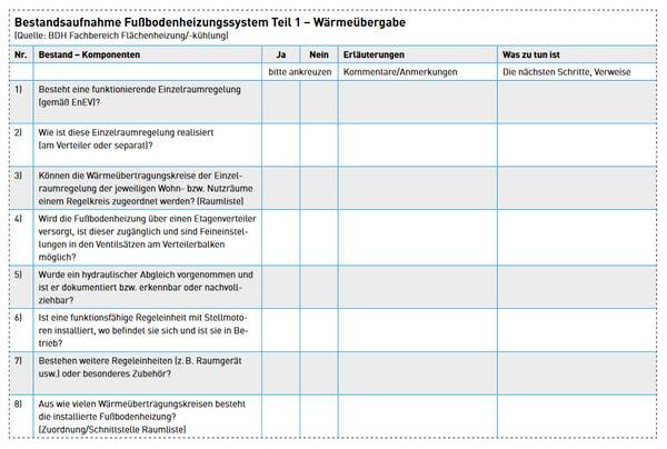 - Checkliste Bestandsaufnahme Teil 1 – Wärmeübergabe