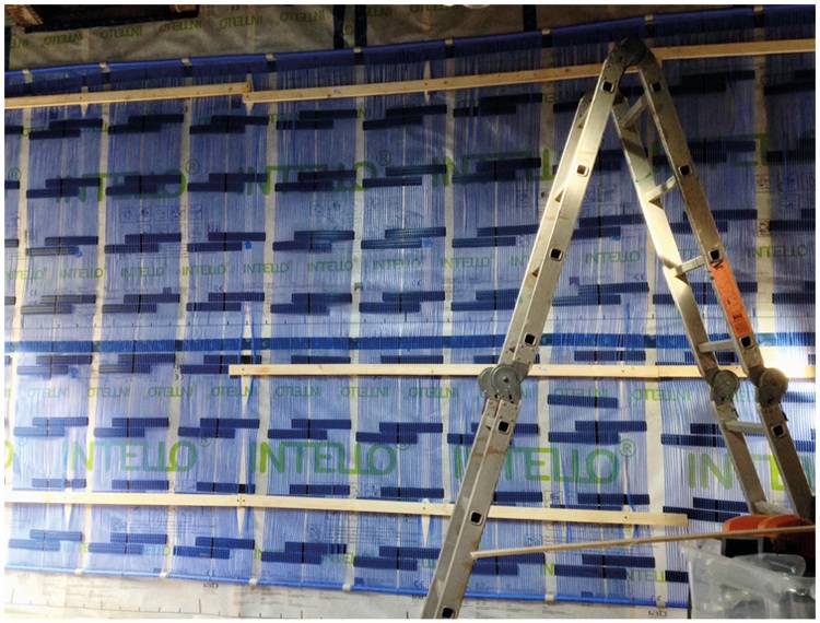 Die Kapillarrohrmatten wurden ­direkt hinter der Schieferfassade ­verlegt.
