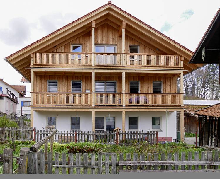 Mit viel Sinn für Nachhaltigkeit und regionaltypisches Bauen hat Daniel Zeitler das Handwerkerhaus seiner Großeltern in Nesselwang renoviert und zu seinem Wohnhaus umgebaut. Das massive Bruchsteinmauerwerk des 140 Jahre alten Gebäudes ließ Zeitler stehen und renovierte die Räume im Untergeschoss: Aus der früheren Schreinerwerkstatt wurden Küche und Wohnbereich, das Obergeschoss aus Holz samt Dach wurde abgerissen und durch einen modernen Holzständerbau ersetzt. Somit verfügt das Haus jetzt über 215 Quadratmeter Wohnfläche, wovon 71 Quadratmeter auf eine Einliegerwohnung im zweiten Stock entfallen. Die unteren Geschosse bewohnt Zeitler mit seiner Partnerin.