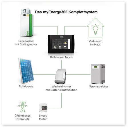 Ökofen nennt das Energiekonzept „myEnergy365“. Es lässt sich auch Schritt für Schritt verwirklichen, weil eine vorhandene Photovoltaikanlage integriert oder der Stirling-Motor nachgerüstet werden kann. Für letzteres bietet die Firma den Heizkessel Pellematic Condens mit vorbereiteten Schnittstellen für Hydraulik und Steuerung in einer „eReady“-Version an. „Aufgrund der längeren Amortisationszeit ist der Pellematic Condens_e mit Stirling kein Produkt für die breite Masse, sondern ein Nischenprodukt für Menschen, die unabhängig und ökologisch Strom und Wärme im Eigenheim erzeugen möchten“, sagt Tomaschko.