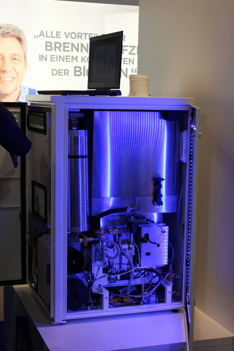 Bei BlueGEN handelt es sich um ein Brennstoffzellen-Energiegerät mit dem laut der deutschen SOLIDpower weltweit höchsten elektrischen Wirkungsgrad. Auf der ISH 2017 ist die Innovationstechnologie des 1,5 kW-starken BlueGEN Wasserstoff-Brennstoff-Stromgenerator vorgestellt worden.
