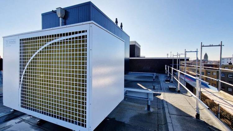 Nicht per Ausschreibung, sondern über Produkt- und Hersteller-Recherche der Ingenieure fiel die Wahl auf Remeha. „Bei Remeha war sichergestellt, dass die Komponenten über eine einzige Regelungsplattform miteinander kommunizieren und funktionieren“, so Lünenborg. „Zudem erfüllte Remeha unsere Anforderungen an die Vorlauftemperatur und den Schallpegel, denn die Wärmepumpen wurden in der Nähe von Balkonen installiert.“