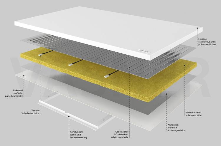 Infrarotheizungen erzeugen Strahlungswärme, die von Infrarotpaneelen an Raumoberflächen wie Wände, Decken und Fußböden abgegeben werden. An diesen Oberflächen erwärmt sich die Luft. Die langwelligen Infrarotstrahlen werden, ähnlich wie die Wärme vom Kachelofen oder wassergeführten Heizflächen in Wänden oder Fußböden, als angenehm empfunden. Der Strahlungsanteil übertrifft den konvektiven Anteil. Das unterscheidet die elektrischen Flächenheizungen von Radiatoren.