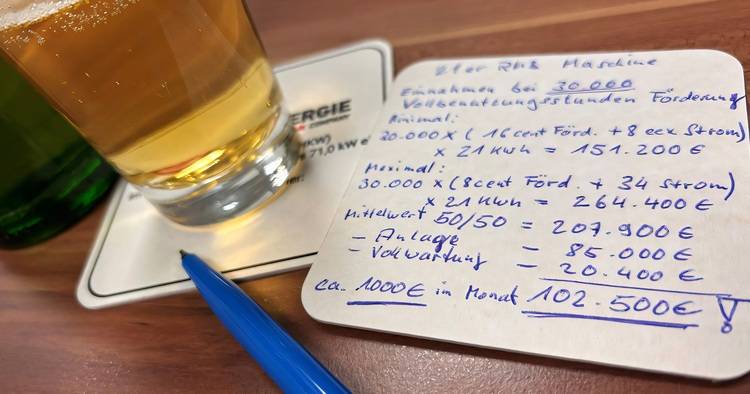 Und so sah Jan Pilles „Bierdeckel-Rechnung“ am Beispiel eines neoTower 21.0 aus: