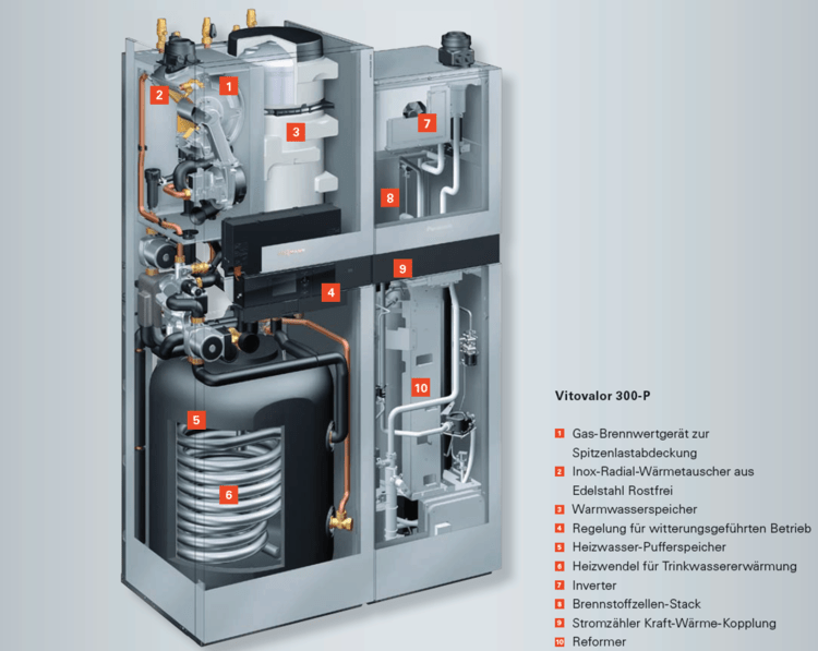 Wenn diese Voraussetzungen aber gegeben sind, können sie, was weniger bekannt ist, auch eine interessante Alternative beim derzeit angesagten Thema Eigenstromversorgung sein. In der Praxis wurden in guten Fällen Eigenstromversorgungsquoten von 50 bis 70% erreicht – Werte, die eine Photovoltaikanlage nur in Kombination mit einem Solarstromspeicher erzielt. Der Grund ist die geringe elektrische Leistung der Brennstoffzelle, mit der gleichbleibender Strom erzeugt wird, der im Haus praktisch immer abgegriffen wird. Eine heute im Eigenheimsektor installierte PV-Anlage üblicher Größe produziert auf einen Schlag eine hohe Stromversorgung von 8 bis 10 kW. Viel Strom wird trotz Solarstromspeichers ins Netz eingespeist.