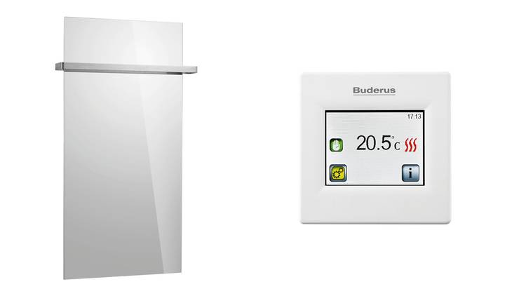 Buderus Logatrend: Infrarotheizgeräte mit Spiegel und Handtuchhalter