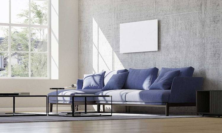 Das rahmenlose Design der Dimplex Infrarot-Metallheizungen integriert sich unauffällig in die Wohnungseinrichtung. Dazu tragen auch die abgeschrägten Kanten und die verdeckte Aufhängung bei. Die Strukturoptik vergrößert auch die Abstrahlfläche und so die Effizienz der Geräte. Eine 20 mm starke Isoliermatte in der Rückseite des Geräts sorgt zudem dafür, dass die Wärme zielgerichtet nach vorne abgegeben wird.