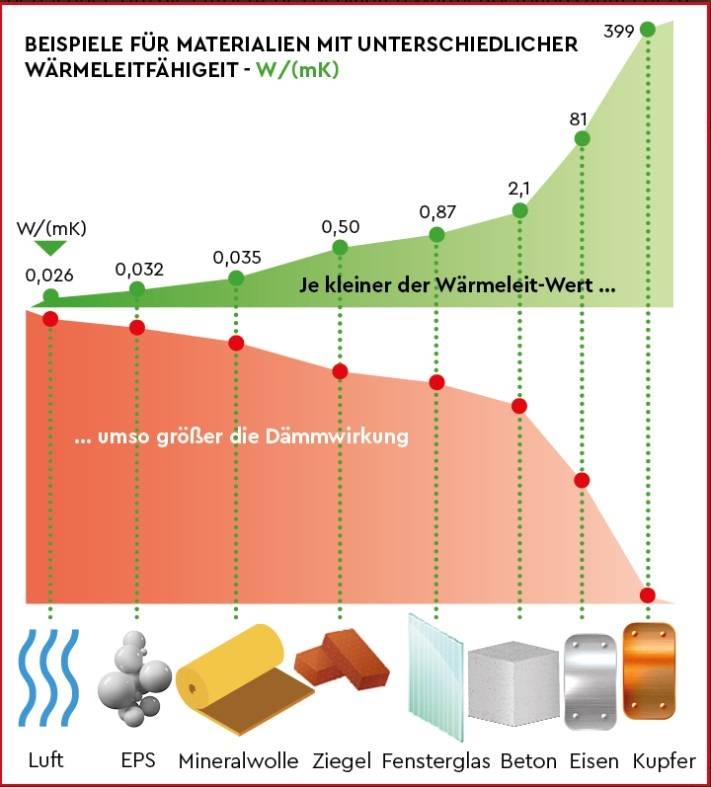 unbedingt vermieden werden – denn das Grundprinzip kostengünstiger Dämmstoffe ist der ruhende Einschluss technisch unbegrenzt verfügbarer Luft mit einer geringen Wärmeleitfähigkeit von 0,0262 W/(m ∙ K) (Bild 4).