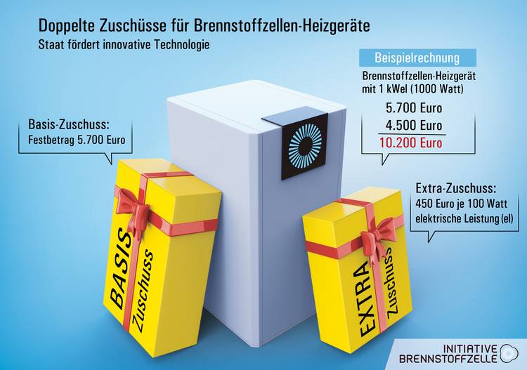 Im Rahmen des „Anreizprogramms Energieeffizienz“ der KfW unterstützt das Bundesministerium für Wirtschaft und Energie die Markteinführung der innovativen Technologie mit einem Festbetrag von 5.700 Euro, der darüber hinaus mit einem Zusatzbetrag von 450 Euro je angefangener 100 Watt elektrische Leistung aufgestockt wird. Für ein Gerät mit einer Leistung von einem Kilowatt gibt es zum Beispiel 10.200 Euro. Der Zuschuss ist grundsätzlich mit der Stromvergütung für Kraft-Wärme-Kopplungsanlagen (KWK) kombinierbar. Andere KfW-Programme, zum Beispiel „Energieeffizient Sanieren“ oder „Energieeffizient Bauen“, lassen sich außerdem nutzen. Lesen Sie hier, welches Programm für Sie das Richtige ist.