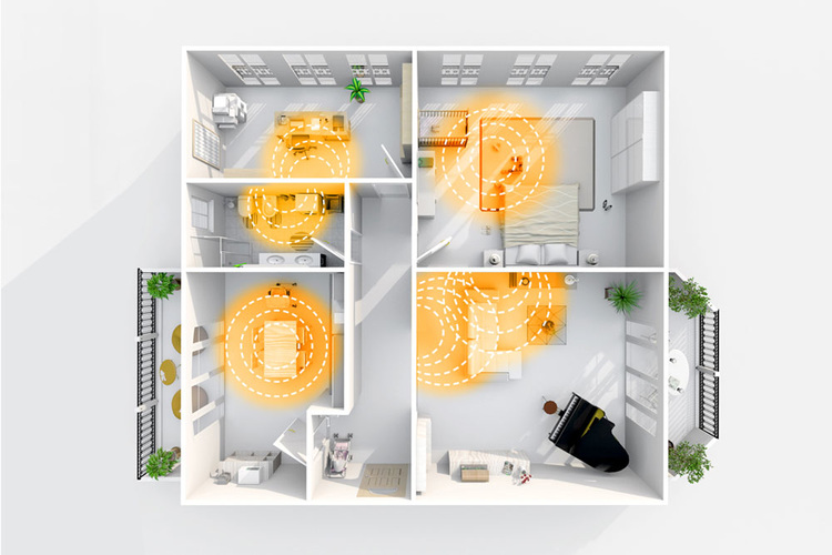 Die Temperatur wird über das mitgelieferte, programmierbare Thermostat gesteuert. Die Heizung reagiert quasi auf Knopfdruck, ohne lange Vorlaufzeiten wie man sie von wassergeführten Systemen kennt.