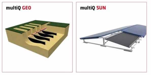Das neue, universelle multiQ-System verbessert laut Hersteller den Wirkungsgrad, spart dabei im Vergleich zur Luft-Wärmepumpe elektrische Energie und sorgt obendrein für eine höhere Lebensdauer der Wärmepumpe, ohne Außeneinheit und störende Geräusche. MultiQ lässt sich in Kombination mit der Photovoltaikanlage betreiben.