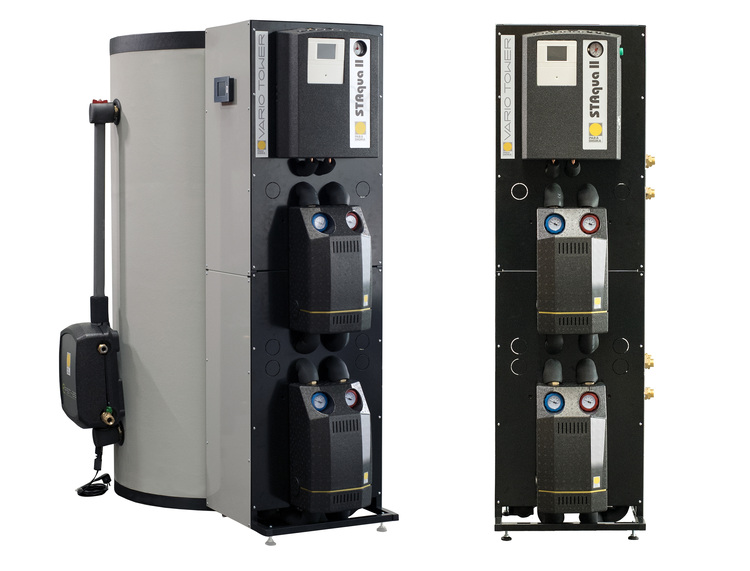 Der Vario Tower ist für den Einsatz in einem Einfamilienhaus gängiger Größe ausgelegt. Über den Systemregler SystaComfort II mit S-Touch Bedienteil versorgt der Vario Tower zwei getrennte Heizkreise und bietet Anschlüsse für eine Solaranlage und einen zusätzlichen Wärmeerzeuger unterschiedlicher Art. Es können Gasbrennwertgeräte über OT-Bus, Pelletskessel über MOD-Bus/LAN Schnittstelle, 1-stufige Kessel über B1 Kontakt oder ein Kessel anderer Hersteller über die 0-10V Schnittstelle am Vario Tower betrieben werden. Die Solarstation STAqua II ist vorverdrahtet, elektrisch geprüft und fertig für den direkten Einsatz mit einer AquaFlex-Solaranlage.