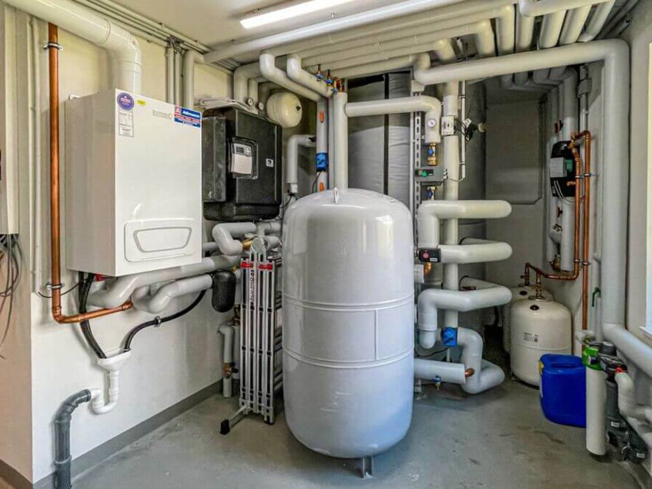 Um das Solarpotenzial nutzen zu können wurden eigens für das Projekt gebaute Pufferspeicher installiert. Damit soll die Wärme- und Trinkwasserversorgung von Mai bis Oktober mit Solarthermie bereitgestellt werden. Bei Unterdeckung bzw. zur Spitzlastdeckung greifen Gasbrennwertkessel ein. Zur Steuerung der Solarerträge in den Pufferspeicher wurden SolarBloC maxi Basic Stationen von PAW installiert.