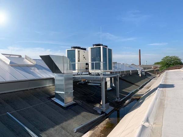 Zur Kühlung der Halle setzte Schwank auf zwei Kaltwassersätze, mit je 115 kW Kühlleistung und 2.300 Liter Pufferspeicher. Für die Büro- und Tagungsräume übernehmen zwei VRF-Wärmepumpensysteme mit insgesamt zehn Innengeräten die Klimaaufgaben. So lassen sich die Räume im Sommer klimatisieren und im Winter beheizen, je nach Bedarf. Oliver Hamacher, Geschäftsführer der Straßenkicker Base: "Auf Knopfdruck können wir die Felder beheizen, auf denen gerade gespielt wird. Dort, wo nicht gespielt wird, kann die Heizung ausgeschaltet bleiben. Das ist sehr effizient und spart uns eine Menge an Heizkosten. Die Büros und Tagungsräume können wir je nach Bedarf individuell heizen oder kühlen – das ist super."