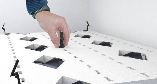 Als Trockenbausystem ist das PYD-ALU Topmodul geeignet für den Einsatz als Heiz- und Kühldecke unter Gipsfaserplatten. Die patentierten Modulhalter bieten eine einfache Lösung für die werkzeuglose Montage. Da das 16 mm starke PE-RT-Systemrohr erst nach der Befestigung der Module an der Decke verlegt wird, sind Rohrverbindungen innerhalb der Systemfläche überflüssig. Das PYD-ALU Topmodul kann darüber hinaus mit geringem Aufwand und direkt auf der Baustelle an die jeweiligen Anforderungen angepasst werden.