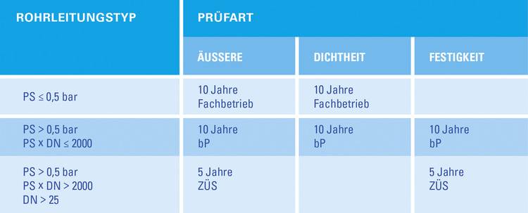 Teil der Rohrleitungsprüfung ist die Dichtheitsprüfung. Hier ändert sich etwas beim geforderten Prüfdruck: Er muss künftig stets zwischen 100 und 150 mbar liegen – auch bei der Dichtheitsprüfung bei der wiederkehrenden Prüfung von Anlagen alle zehn Jahre, die bislang unter Betriebsdruck bei 50 mbar stattfand.