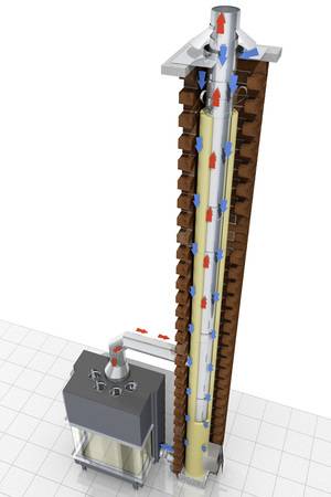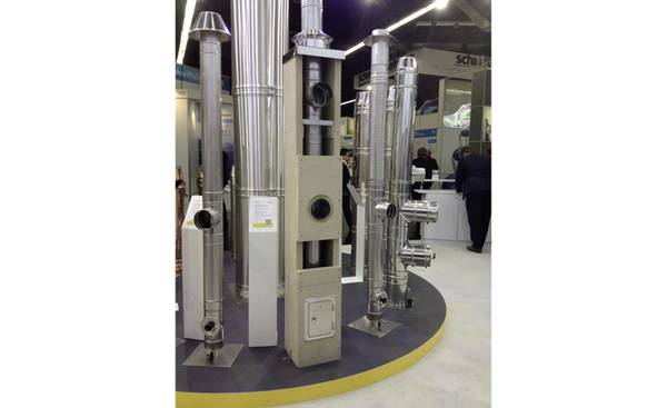 - Ist kein Schacht vorhanden, bieten sich eine doppelwandige Edelstahl-Abgasanlage, eine entsprechende Anlage aus Keramik oder ein Leichtbauschornstein an.