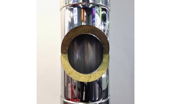 Ein doppelwandiger Edelstahlschornstein besteht aus dem abgasführenden Innenrohr aus dem Werkstoff 1.4404 oder 1.4571 (V4A), einer zugelassenen Dämmung und einem Außenmantel, vorwiegend aus dem Werkstoff 1.4301 (V2A).