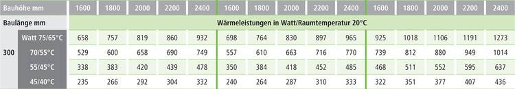 Ich möchte 1000 Watt (W) an einen Raum mit 20 °C Innentemperatur liefern und frage bei einem Heizkörperhersteller nach, unter welchen Bedingungen sein Heizkörper die 1000 W wohl bringen würde, wenn ich mit 70 °C starte.