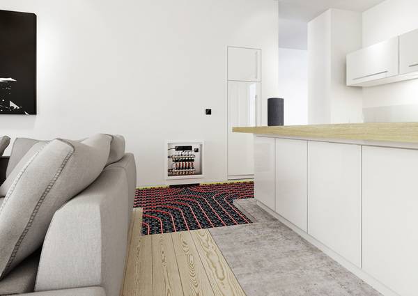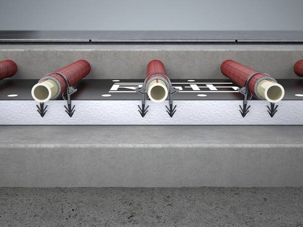 Geregelte Wärmeabgabe: Die Lösung Rautherm Iso Speed K ermöglicht eine EnEV-konforme Installation der durchlaufenden Zuleitungen bei Fußbodenheizungen und erfüllt so die Anforderung an die Regelbarkeit von Räumen mit einer Nutzfläche größer als 6 m². Die Zuleitungen werden in der Dämmebene installiert und anschließend wird die Rautherm Speed Plus Matte aufgebracht. Diese dämmt den Wärmestrom zum Raum hin deutlich ein.